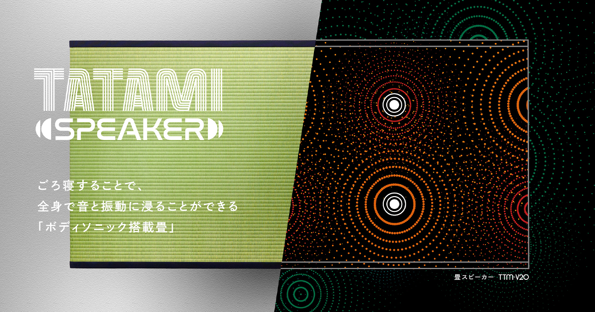 通常のスピーカーは空気を振動させることで音が耳に届きますが、タタミスピーカーは畳そのものを震わせて音を直接からだに伝えます。