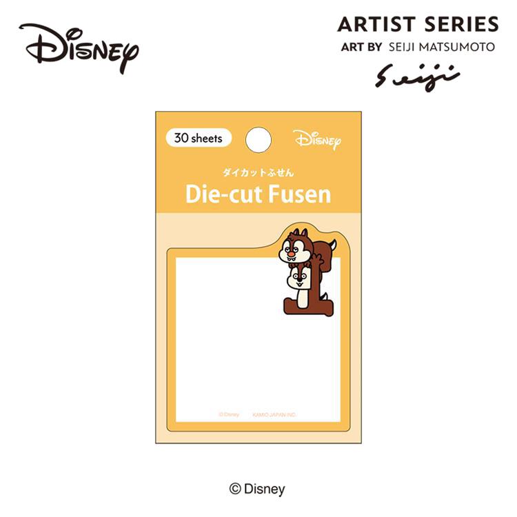 人気アーティストの松本セイジさんが描くディズニーキャラクターのワンポイントのイラストがポップで可愛い、シンプルなダイカット付箋です。