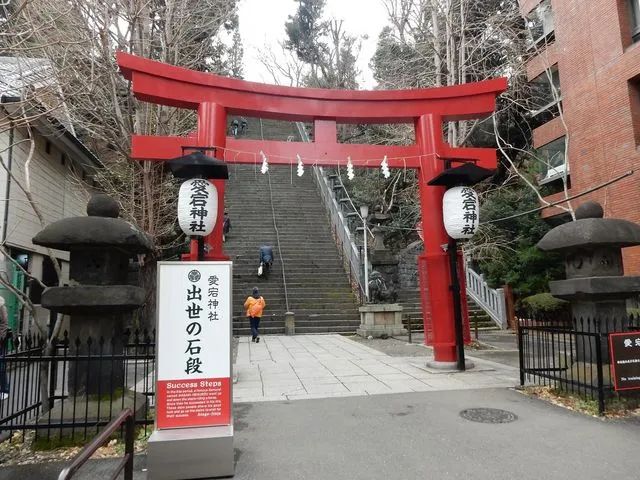 江戸時代に侍・曲垣平九郎が馬で石段を上り下りし将軍にたたえられ出世したことから出世のご利益があるといわれています。