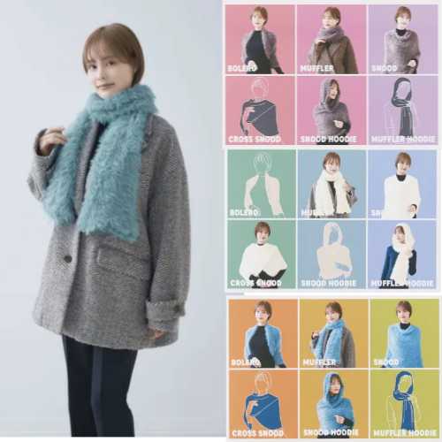 ボレロのように羽織ったり、クロス形にしたりポンチョ・フード×ポンチョ、フード×マフラーなど気分やコーデに合わせて自由自在に使えます。