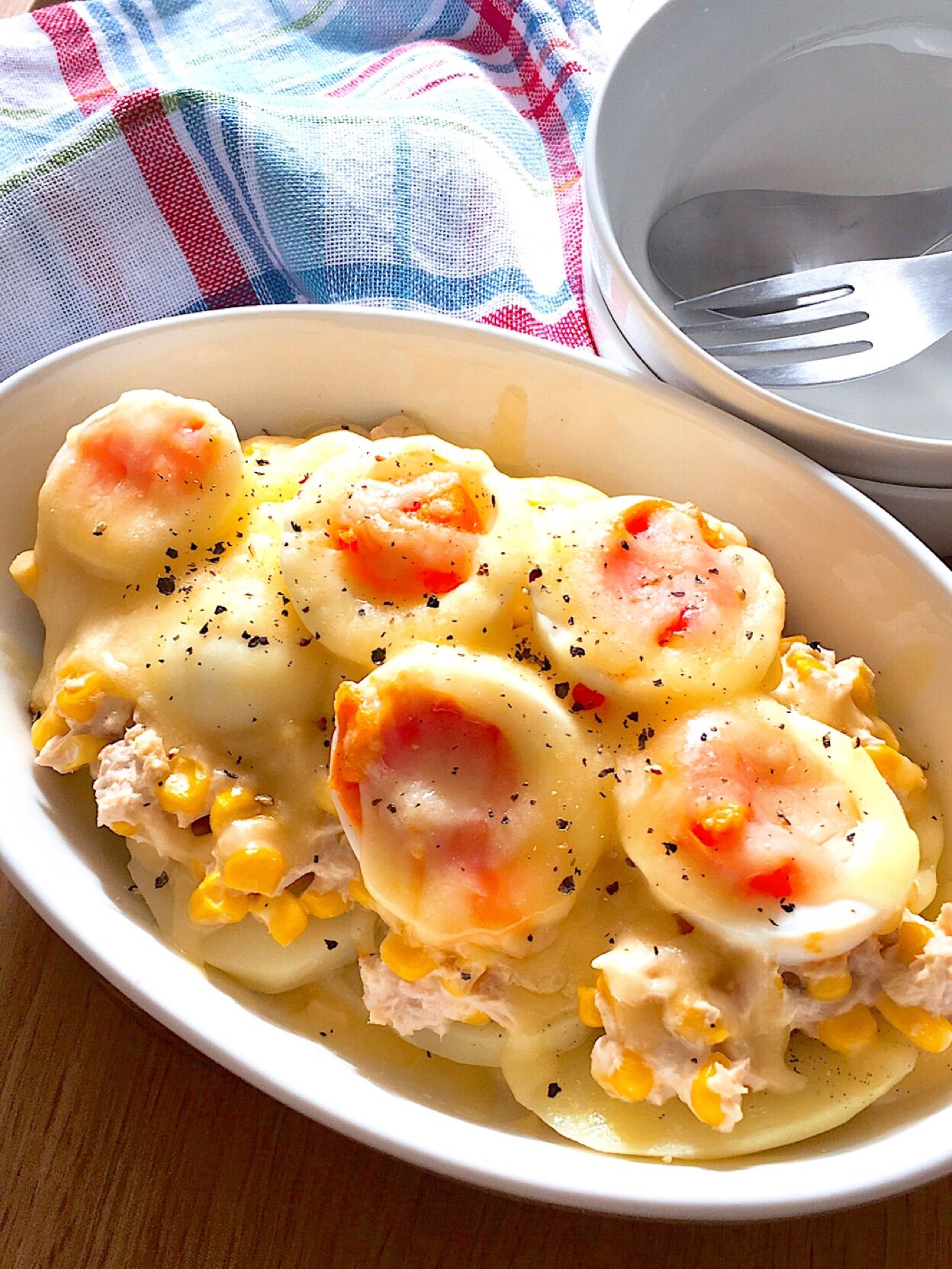 ツナマヨコーンとたまごのポテチー焼きレシピ