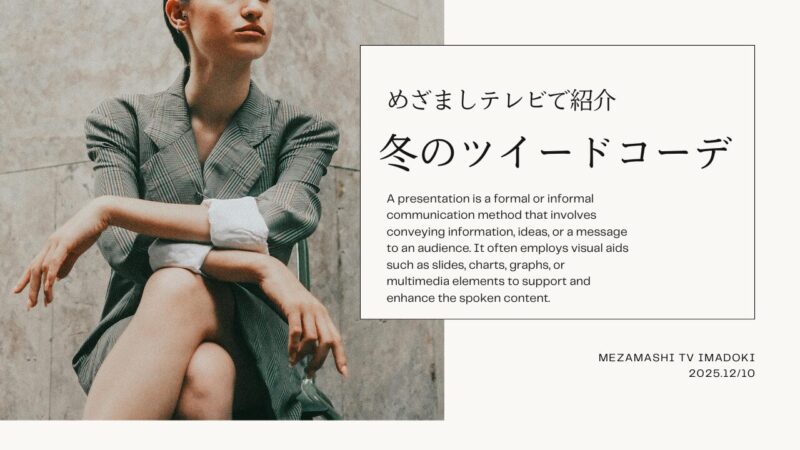 2025年12月10日のフジテレビ系列「めざましテレビ」内のコーナー・イマドキでは冬のツイードアイテムを特集していたので、ご紹介します。