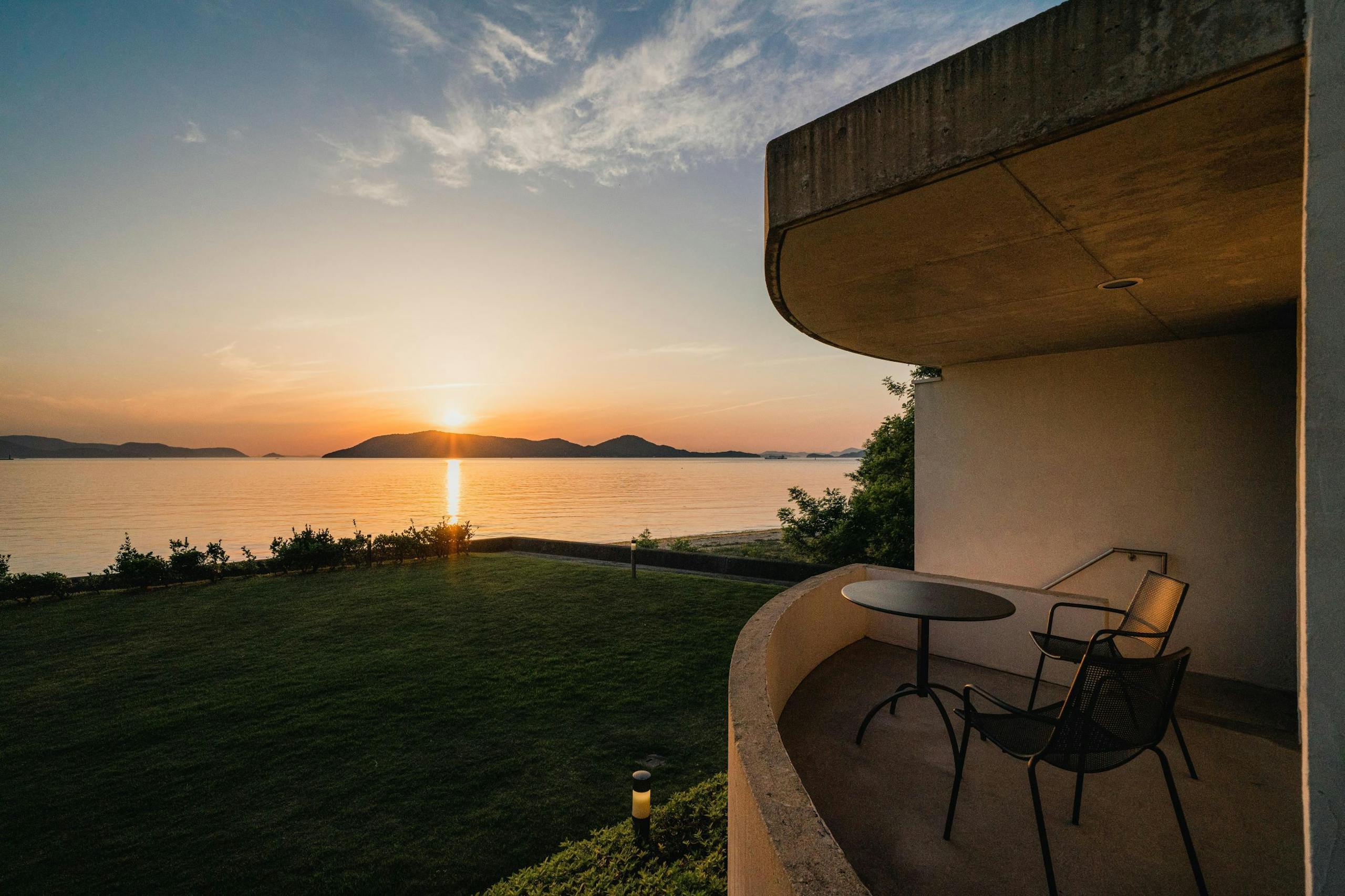 香川県高松市にあるオーベルジュ ドゥ オオイシは穏やかな瀬戸内海を一望できるスイートルームのみの全5部屋。