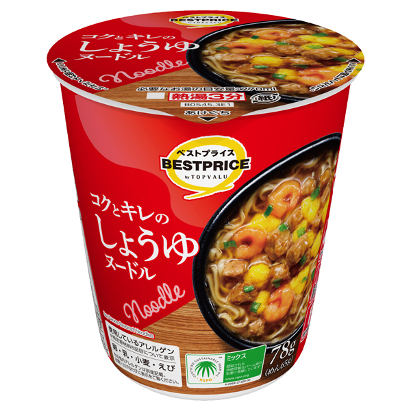 コスパ第1位:トップバリュベストプライス コクとキレのしょうゆヌードル(イオントップバリュ)