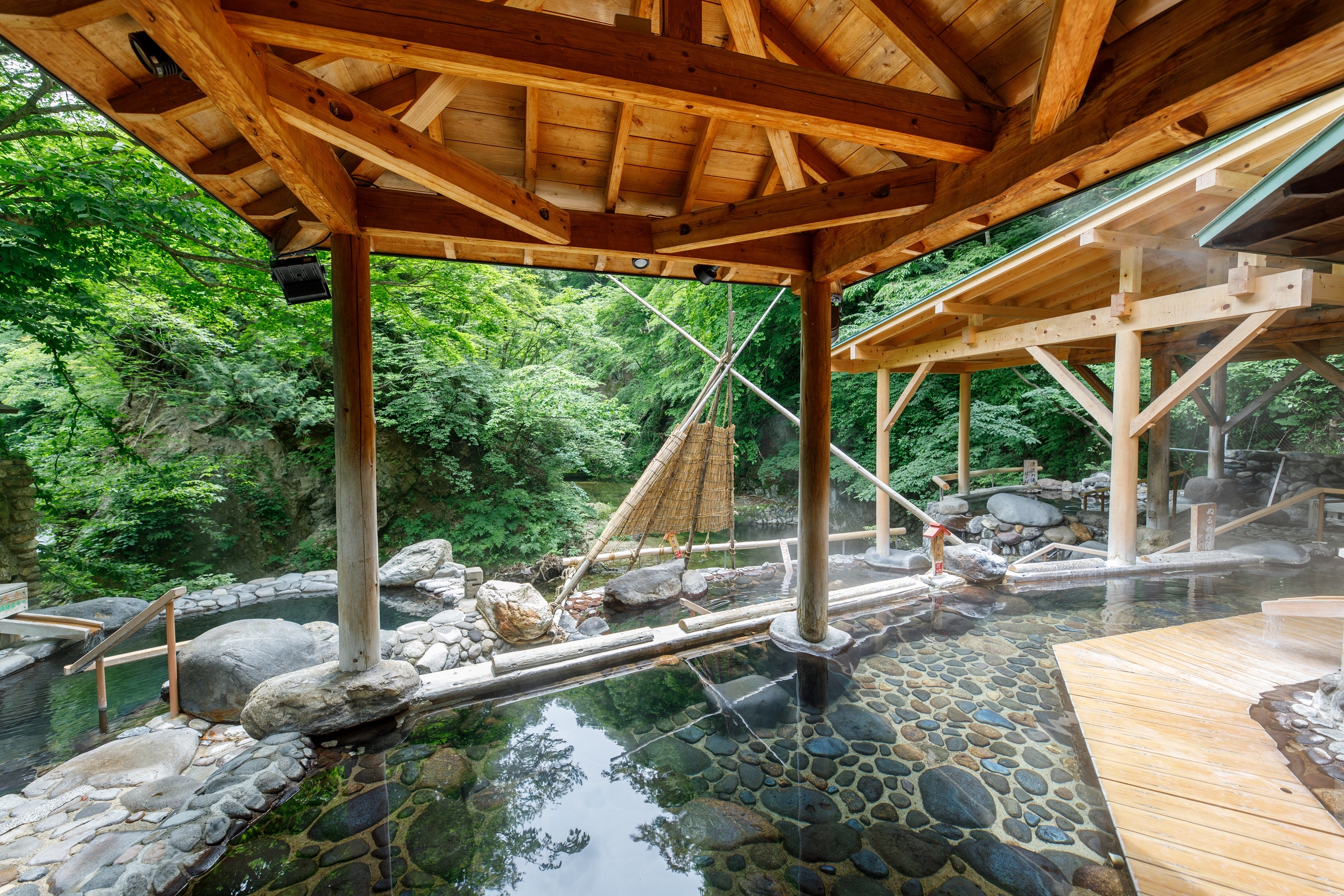 作並温泉 ゆづくしSalon一の坊の風情あるアプローチを抜け辿りつく温泉は、里山と川にかこまれた自家源泉かけ流し。