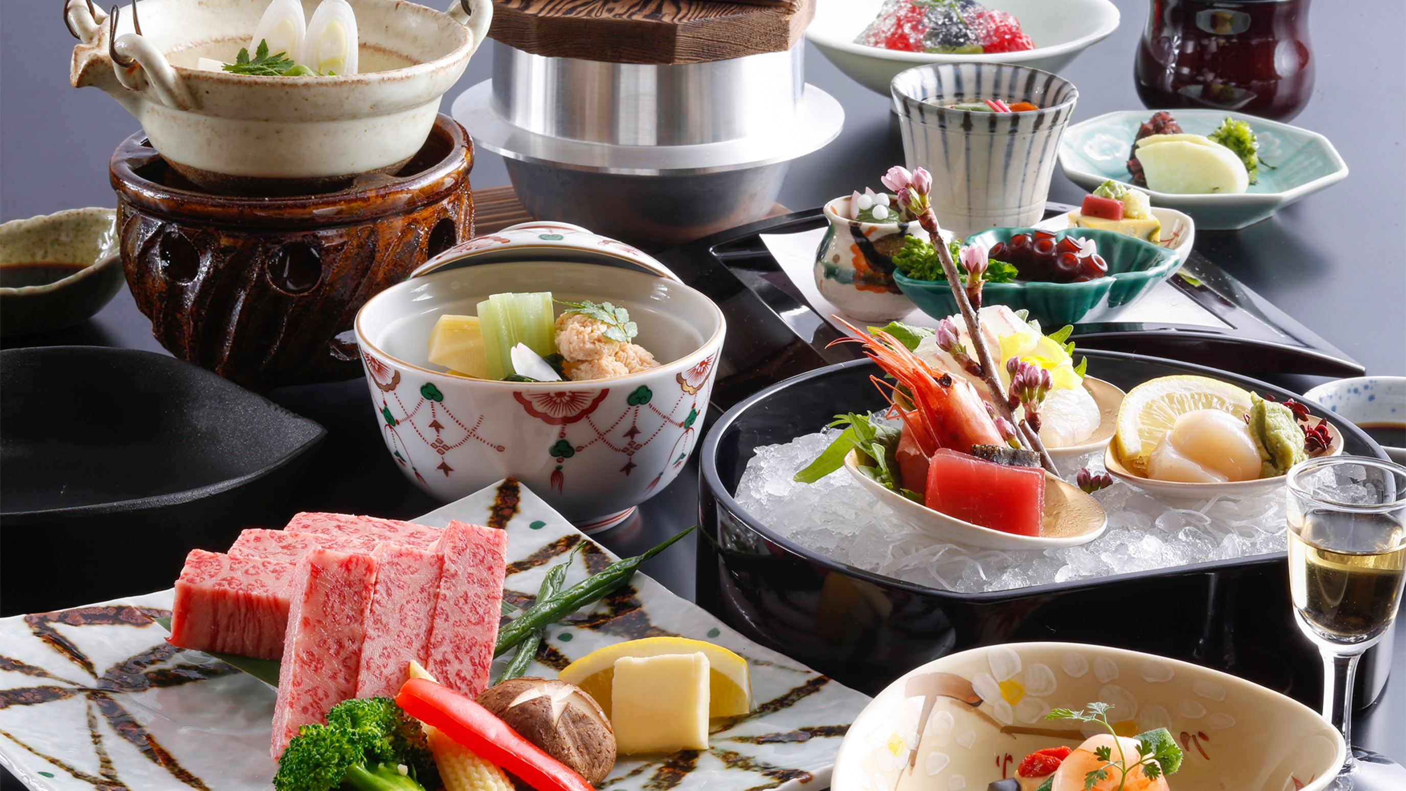 夕食は神戸牛などが含まれた会席料理などが楽しめます。